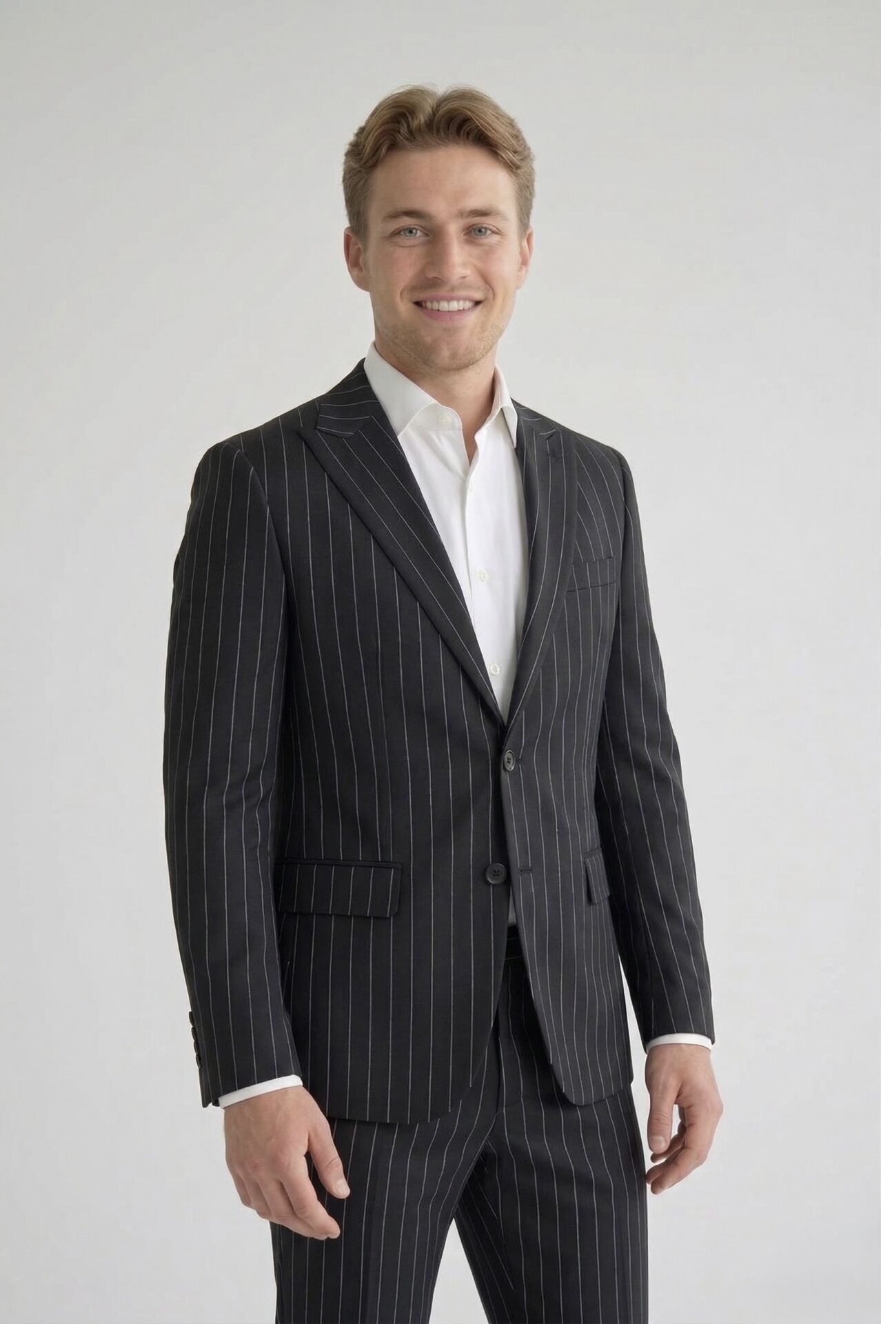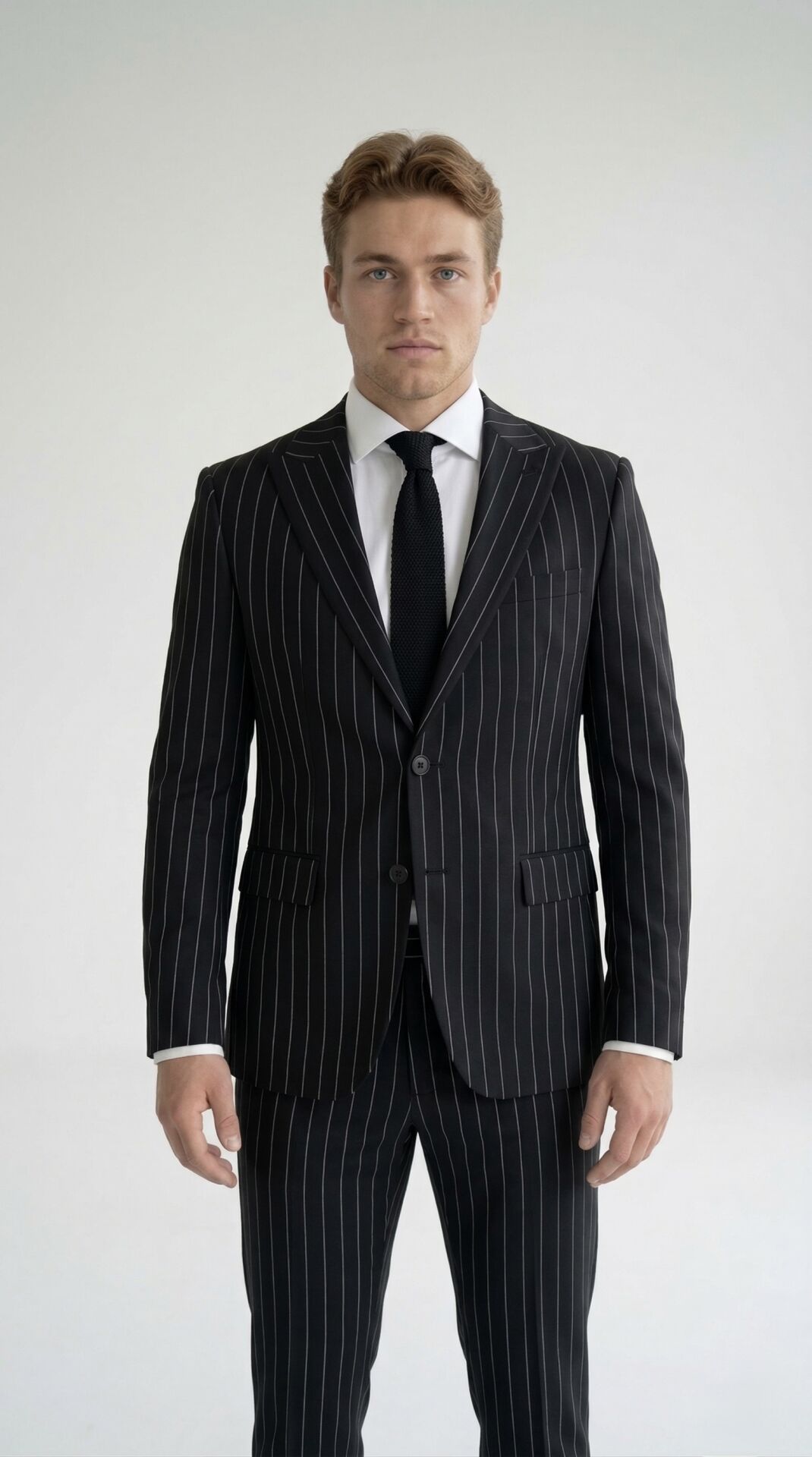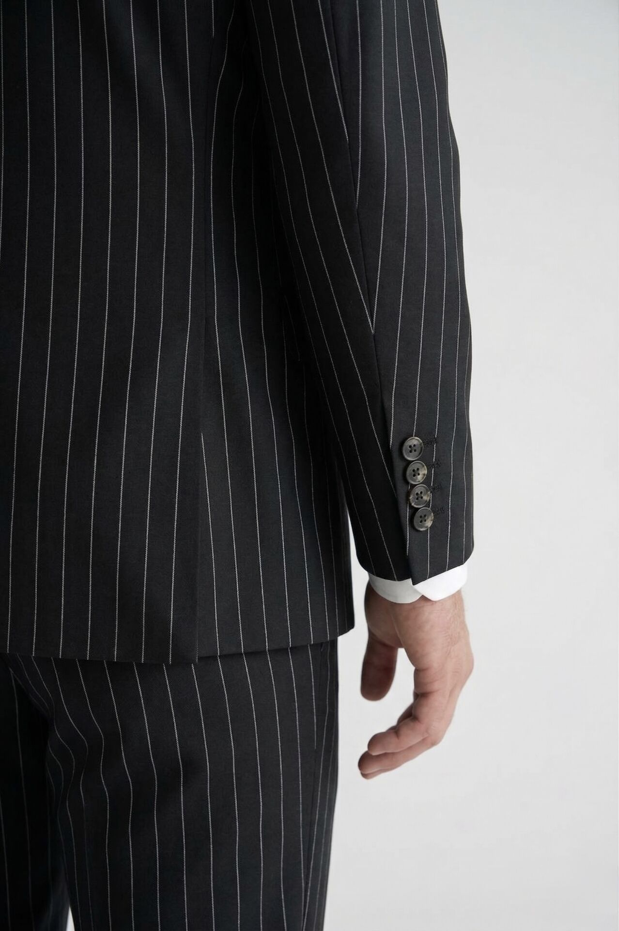 Beyaz Çizgili Çift Düğmeli Siyah Takım