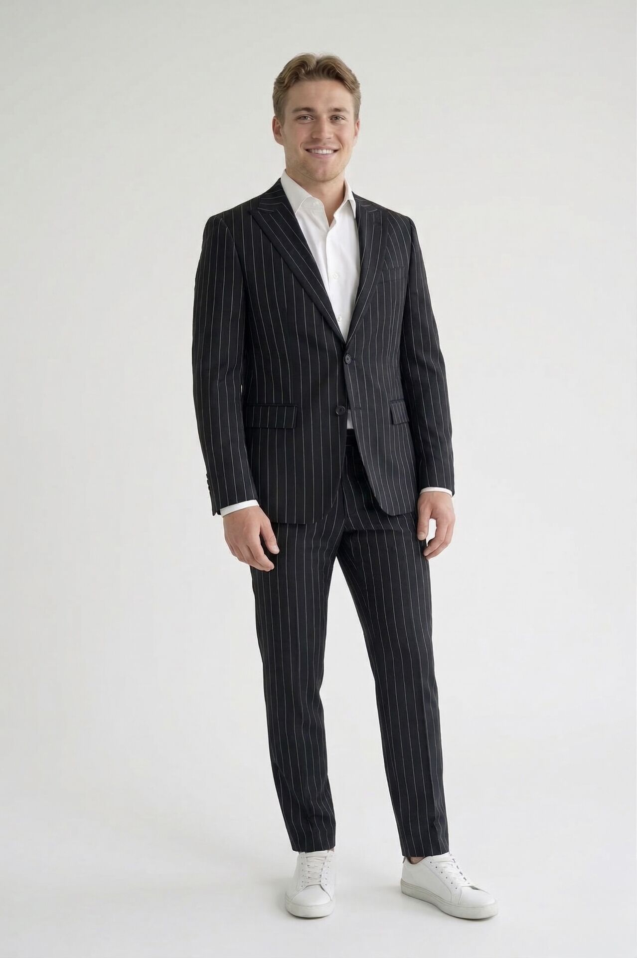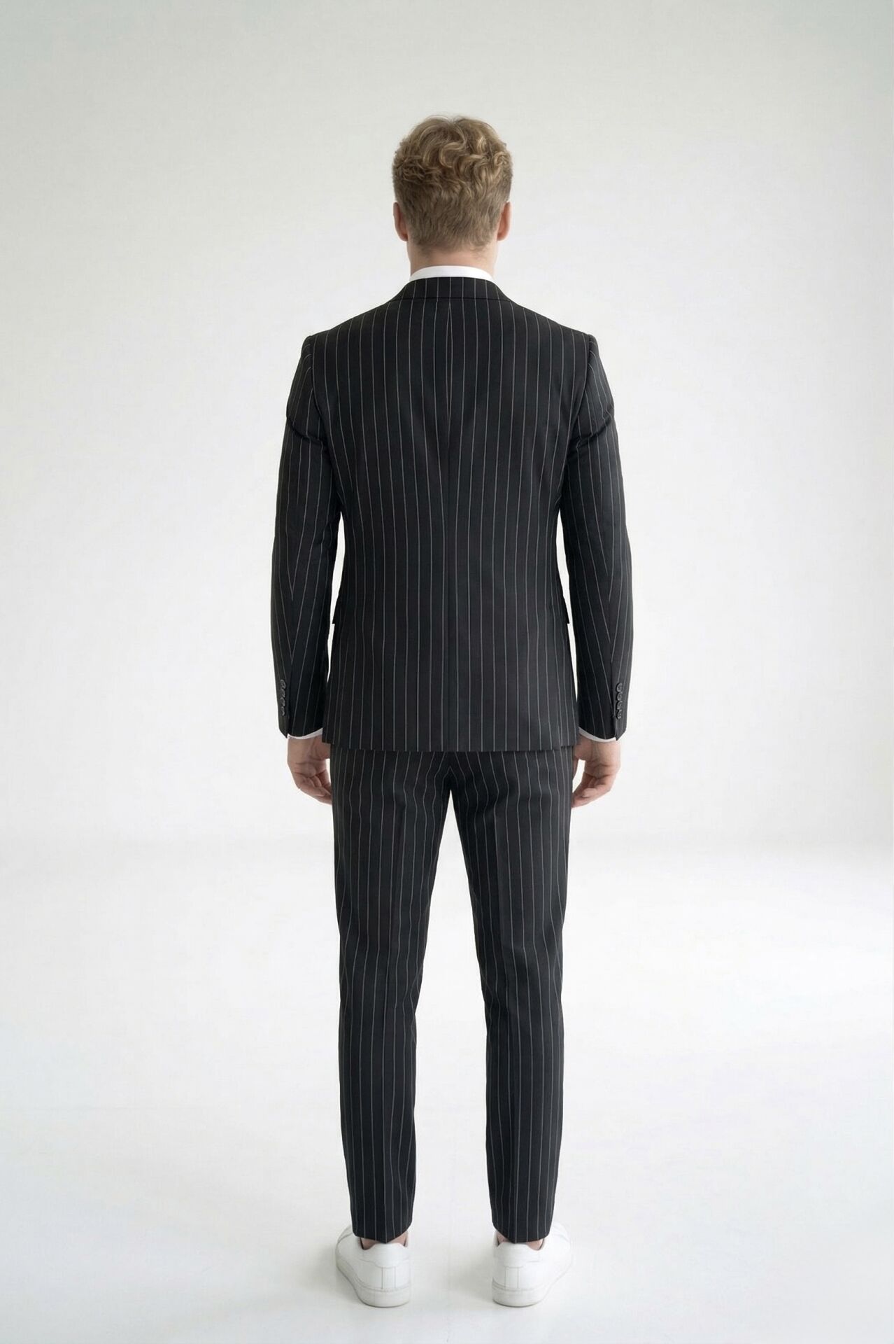 - Şık ve minimal Beyaz çizgili Siyah Takım