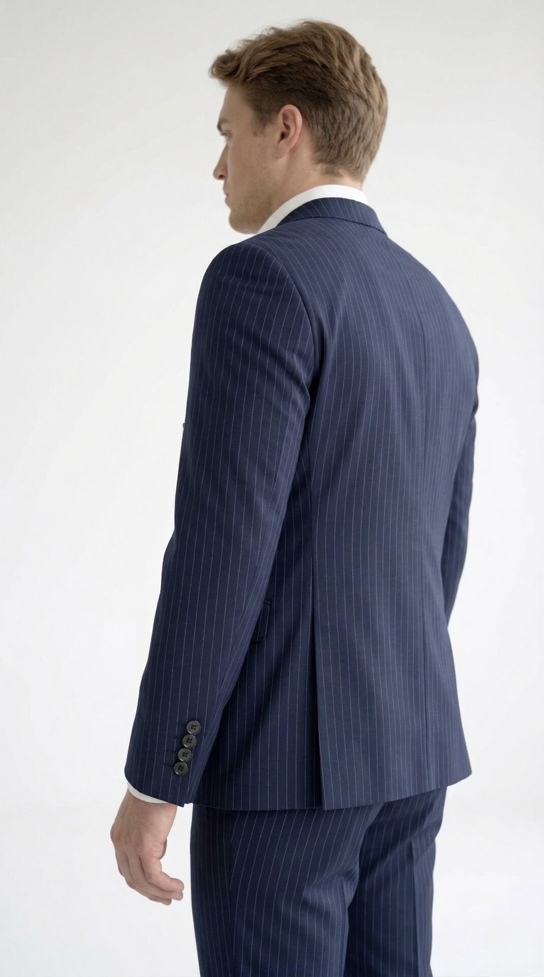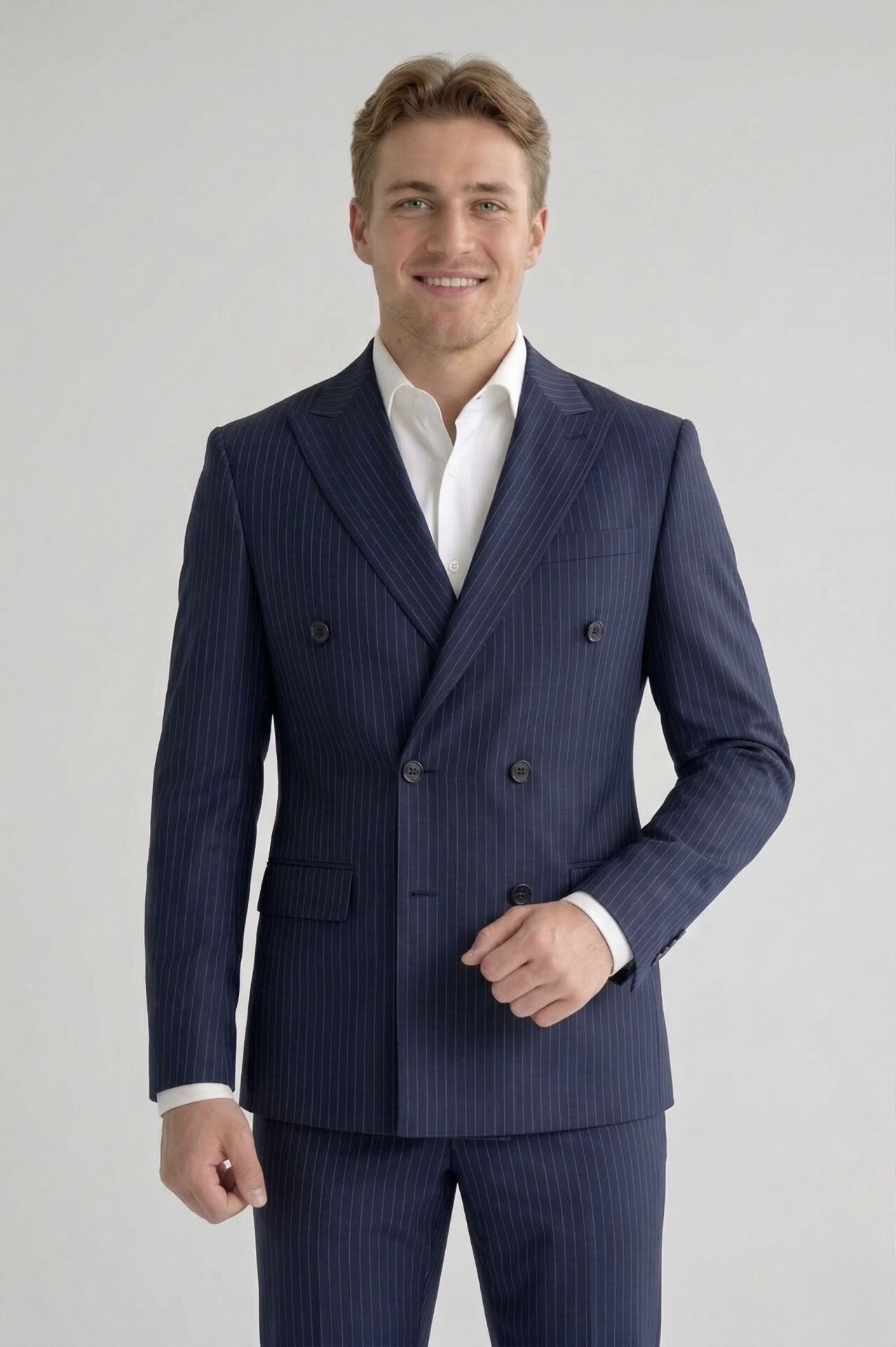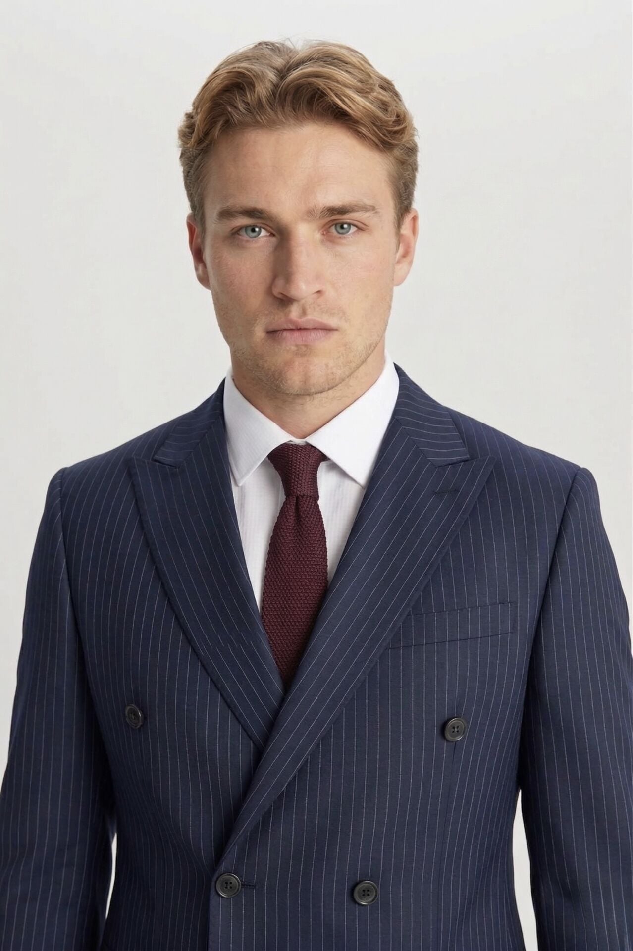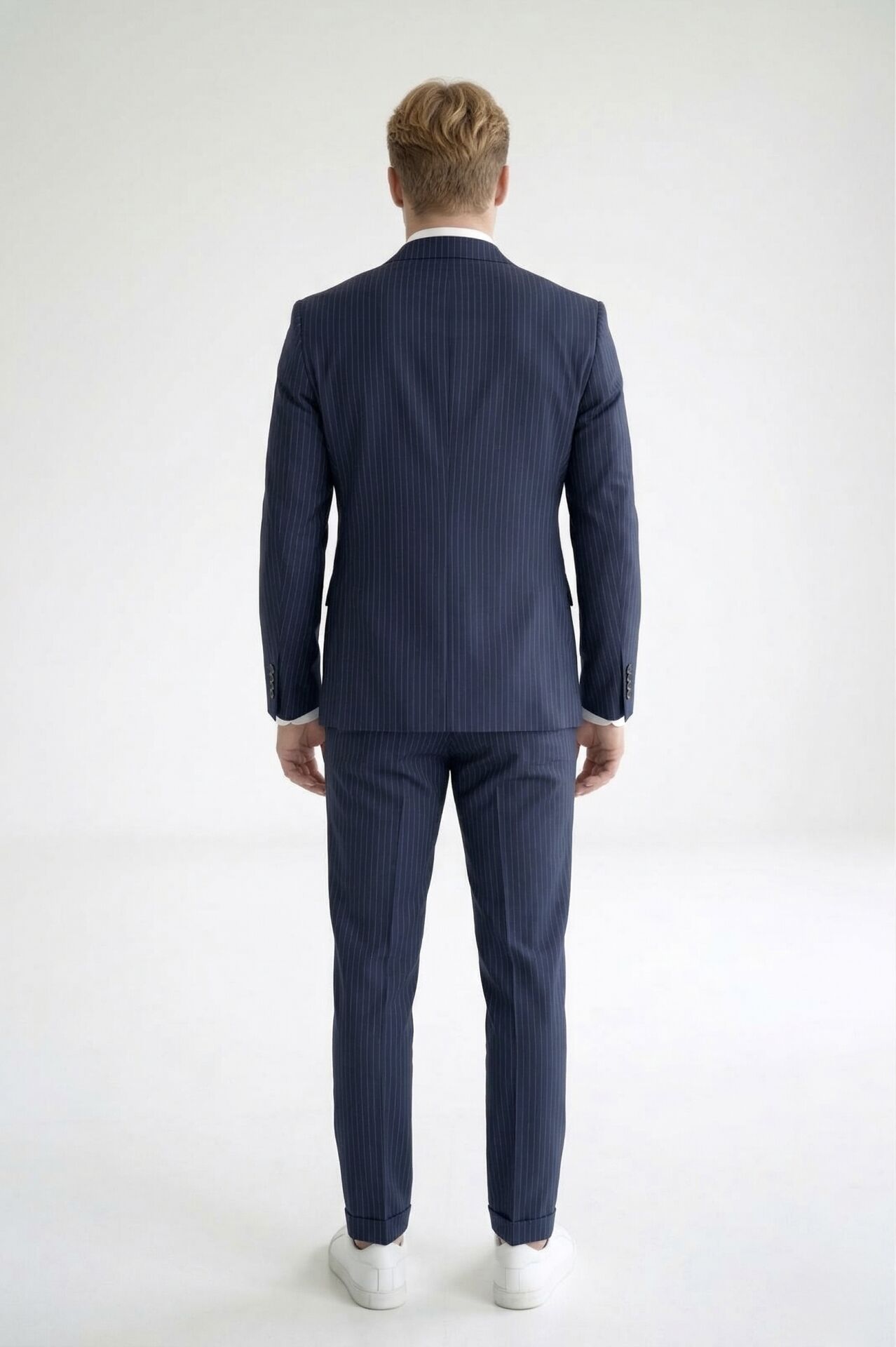 Beyaz Çizgili Lacivert Kruvaze Takım